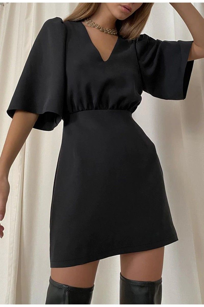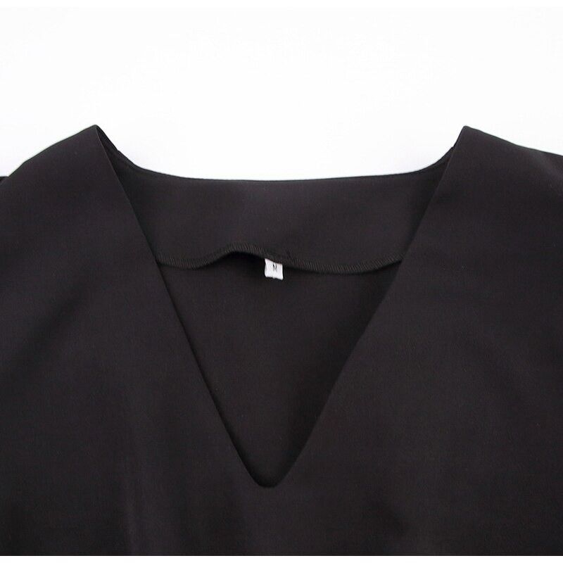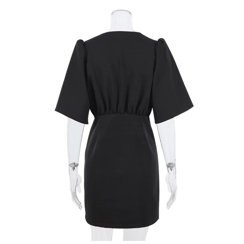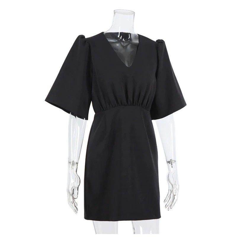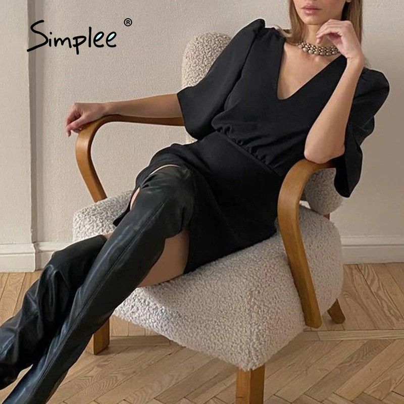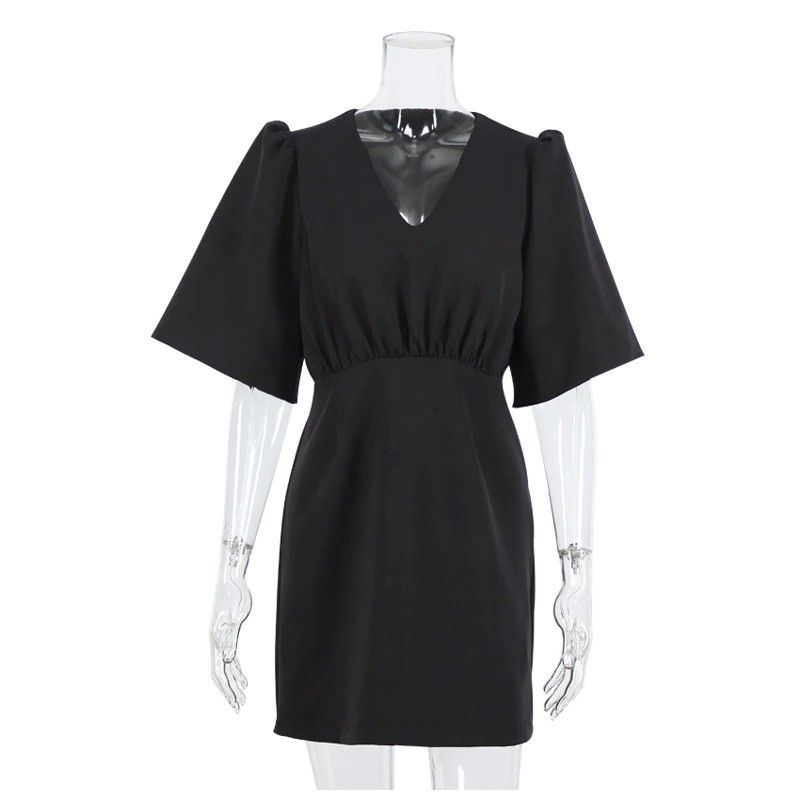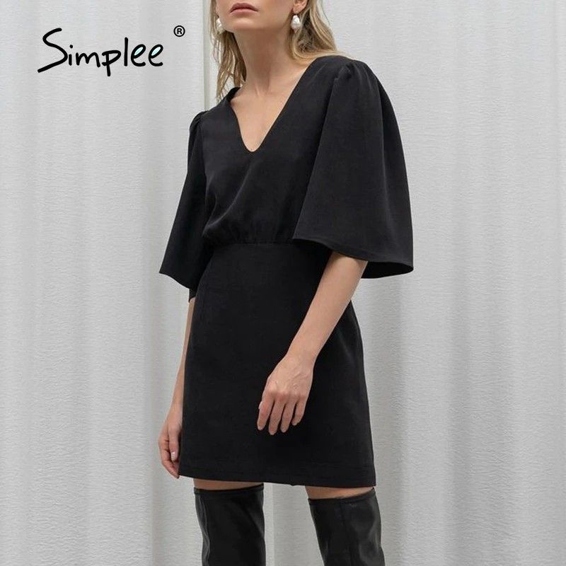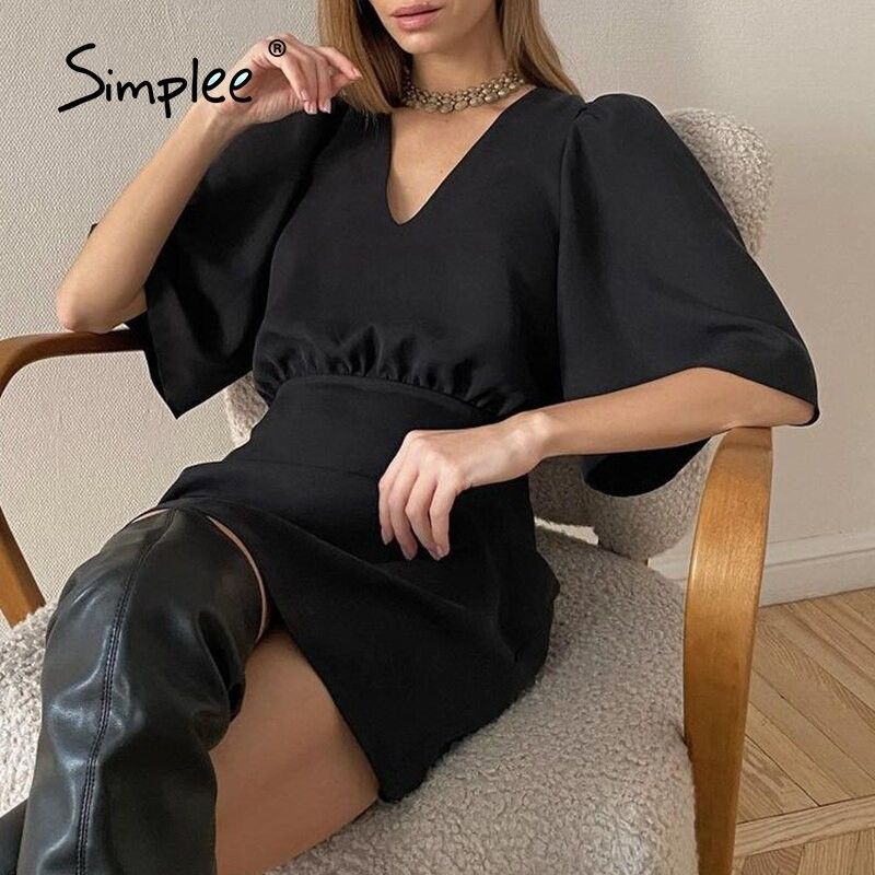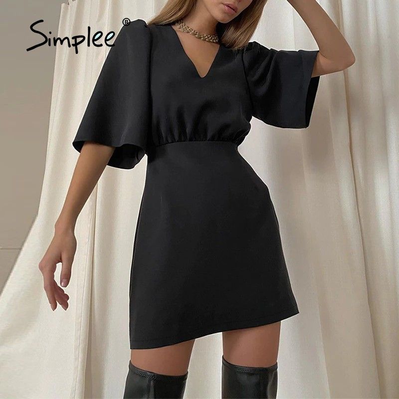 Simplee Luxury Black Short Sleeve Summer Women Dress Newest Sexy V-Neck Solid High Street Dress Elegant A-Line Ladies Mini Vestido
