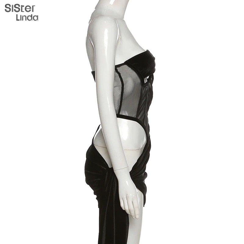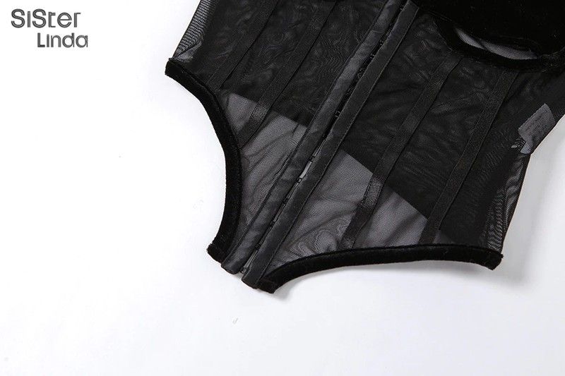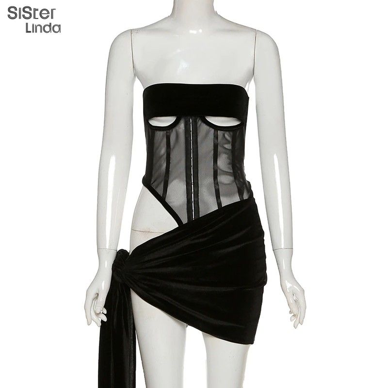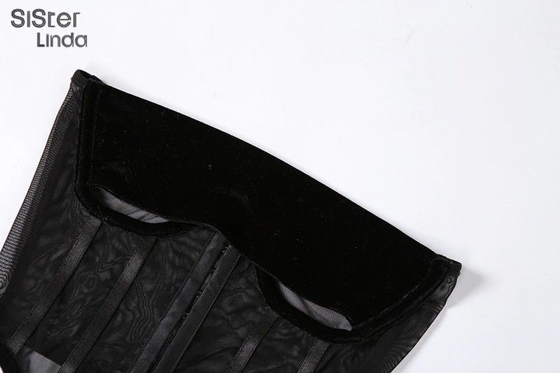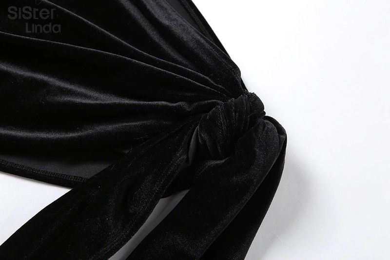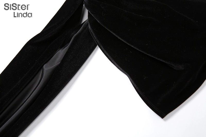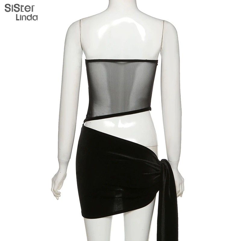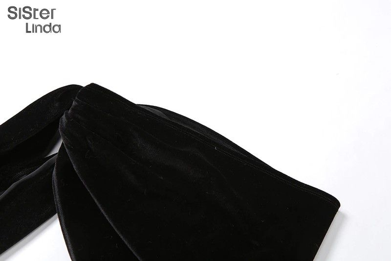 Sisterlinda Women Black Two Piece Suit Velvet Patchwork Sexy Zip Up Corsets Top+Bandage Mini Skirts Activity Matching Set Outfit