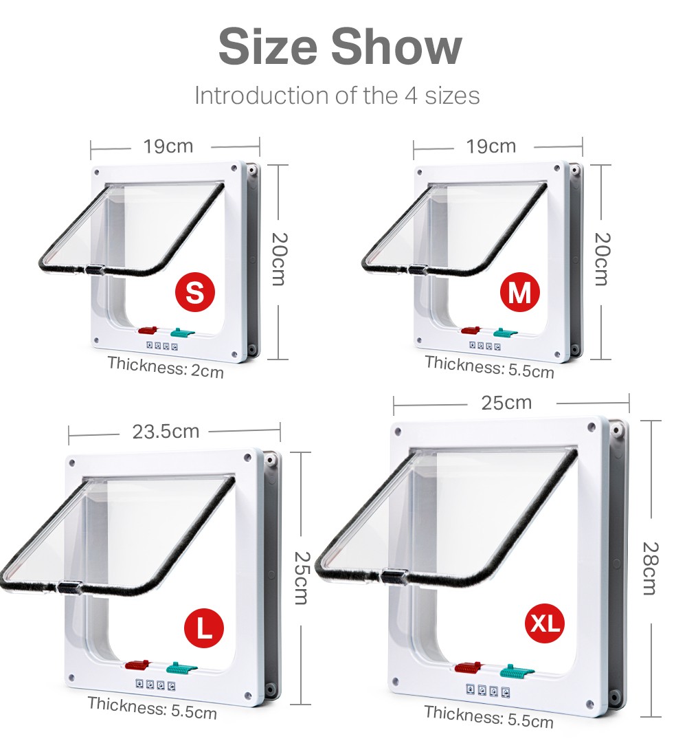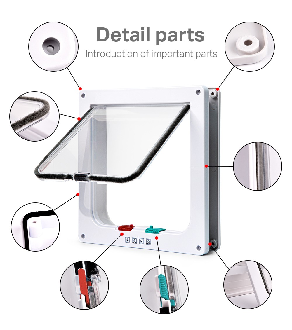 Smart Pet Door 4 Way Locking Security Lock Abs Plastic Dog Cat Flap Door Switch Direction Doors Small Pet Supplies
