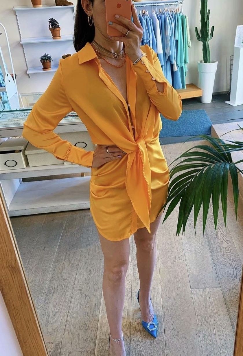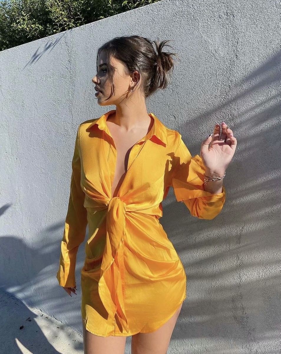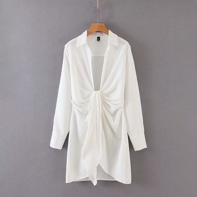 Special Interest Design Mini Dress Summer Long Sleeves Women Irregularity Pleated Vocation Style Sexy Loose White Shirtdress