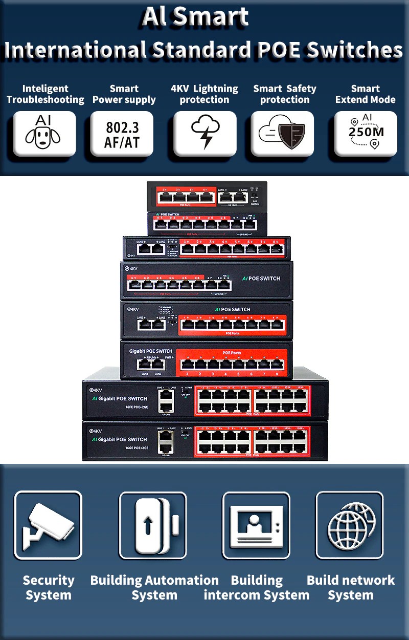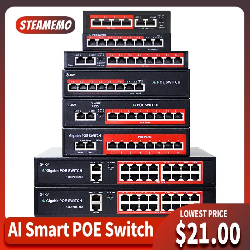 Steamemo Ai Poe Switch Standard Poe 4/8/16 Ports Network Switch Ethernet 10/100Mbps For Ip Camera