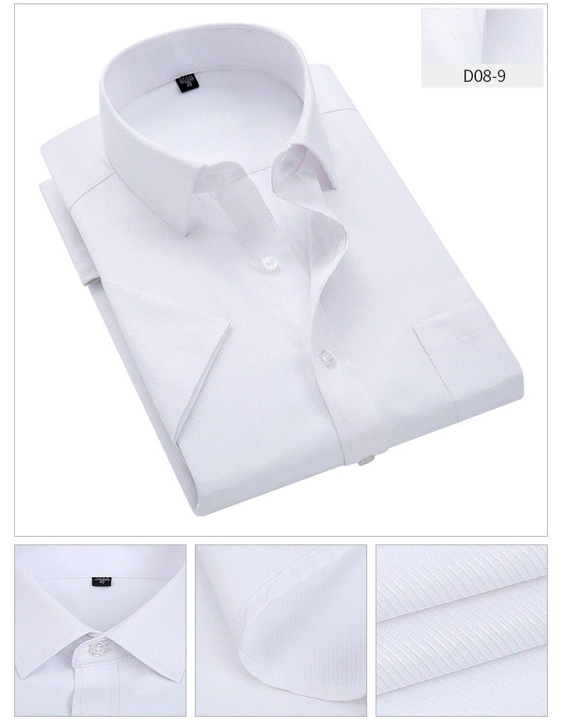 Summer S~8Xl Men'S Striped Short Sleeve Dress Shirt Square Collar Non-Iron Regular Fit Anti-Wrinkle Pocket Male Social Shirt