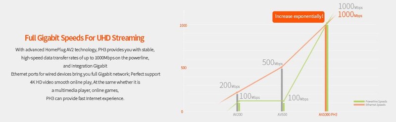 高度なhomeplug av2テクノロジーを搭載したph3は、最大1000mbpsの安定した高速データ転送速度を提供し、4k hdビデオ、マルチメディアプレーヤー、オンラインゲームに最適です。