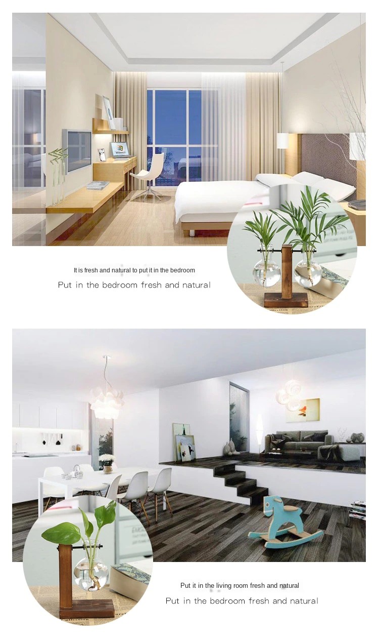 Terrarium Hydroponic Plant Vases Vintage Flower Pot Transparent Vase Wooden Frame Glass Tabletop Plants Home Bonsai Decor