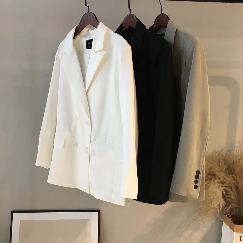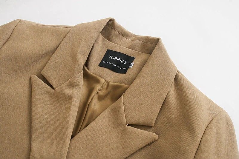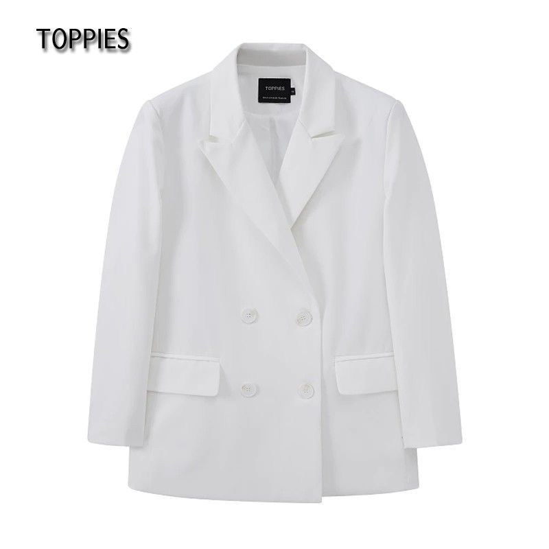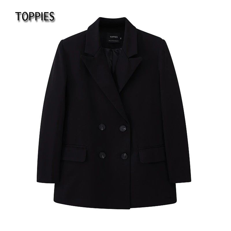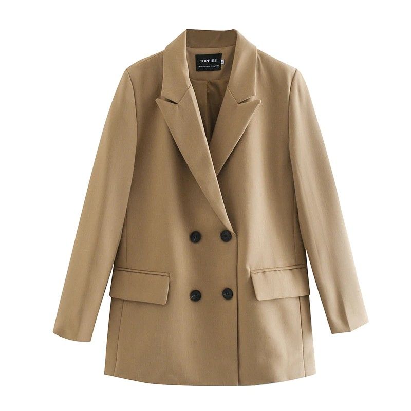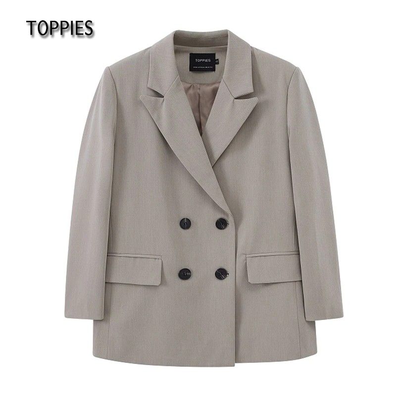Toppies Newest Womens Long Blazer Double Breasted Suit Jacket Loose Oversize Coat Solid Color Formal Blazer