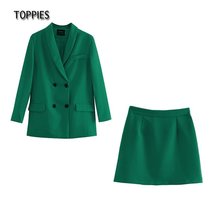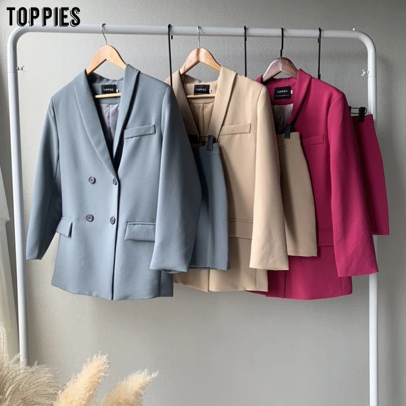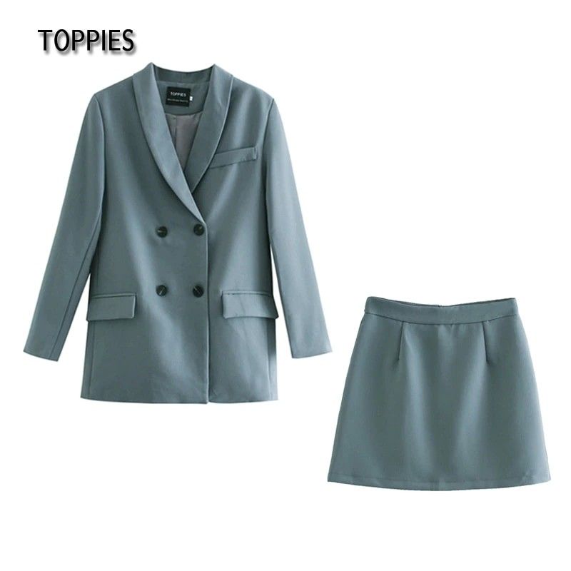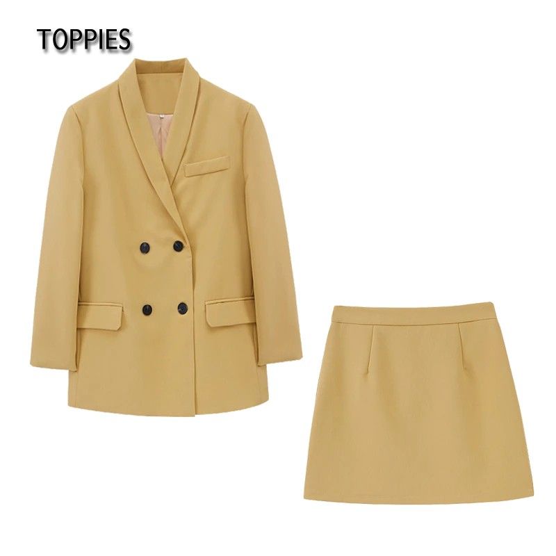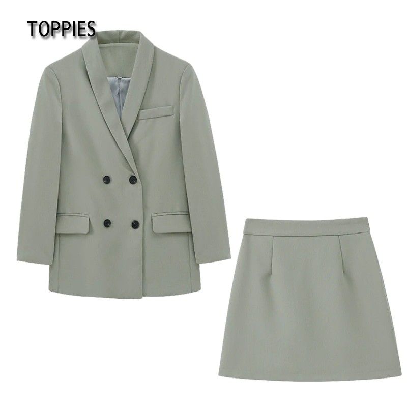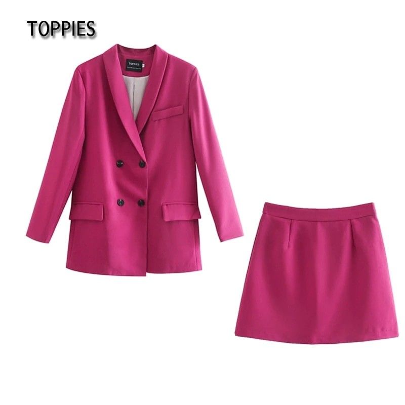 Toppies Womens Blazer Two Piece Suit Set Double Breasted Jacket Blazer Newest Spring Ladies Formal Suit