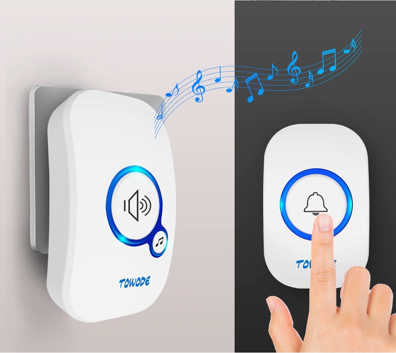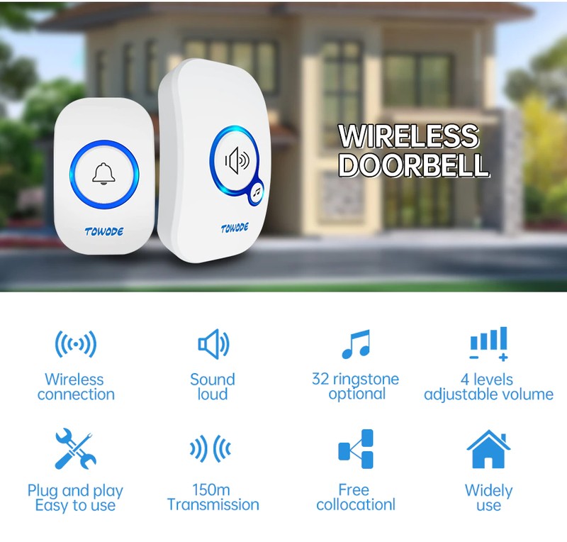 Towode – Sonnette Intelligente Sans Fil, 433Mhz, 150 Mètres De Distance 32 Chansons, 4 Niveaux De Volume