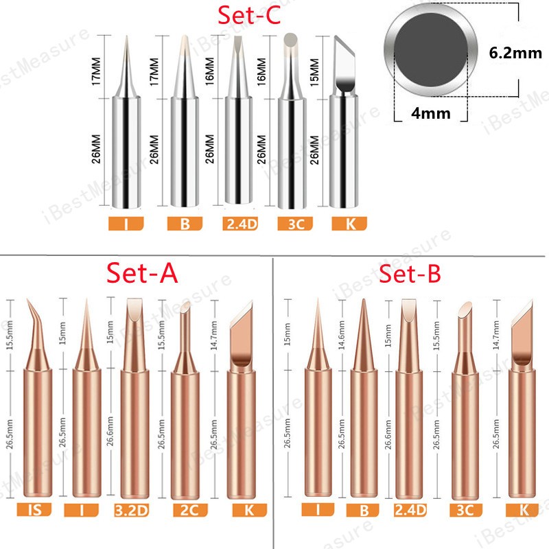 Bu sette toplam 5 şekil lehimleme uçları vardır ve farklı lehim ihtiyaçları için uygun olanı seçebilirsiniz.