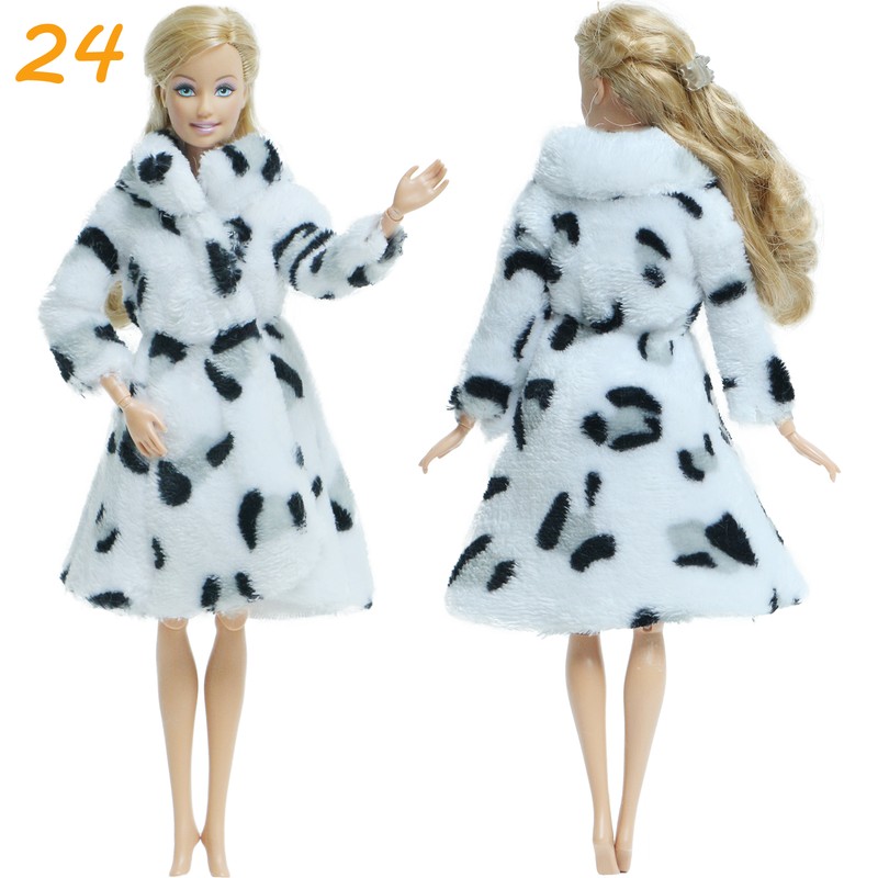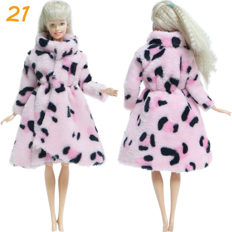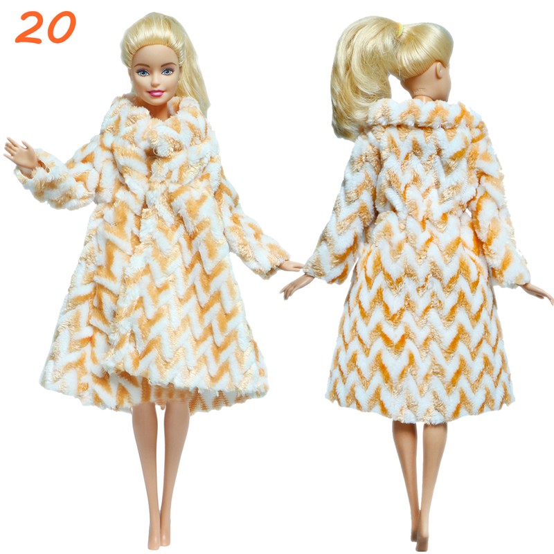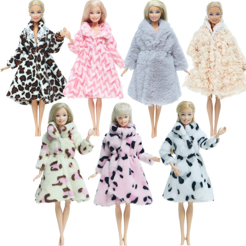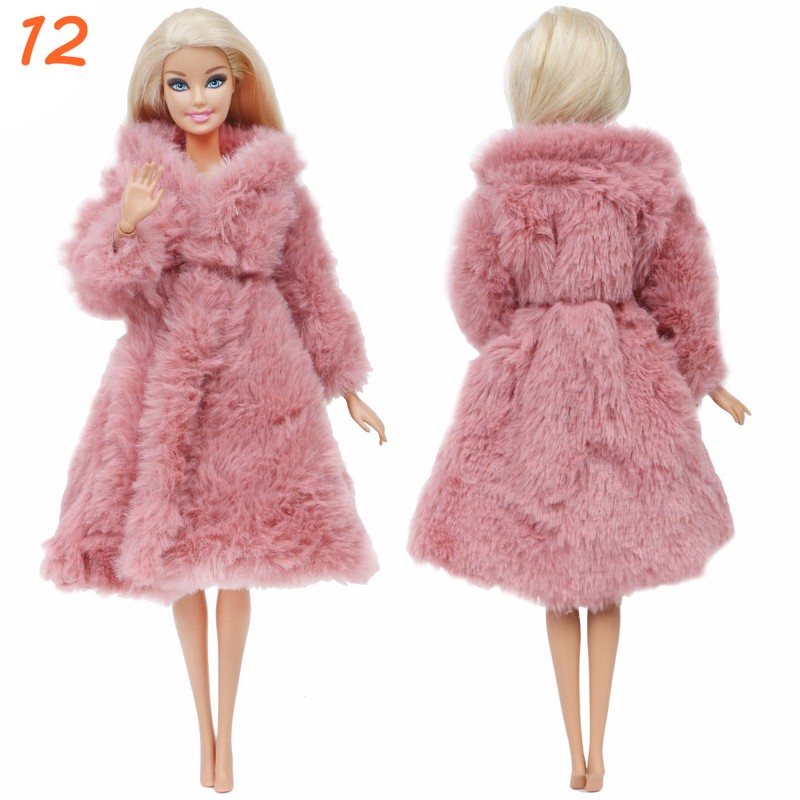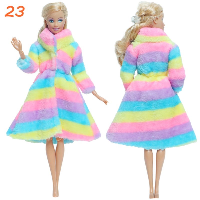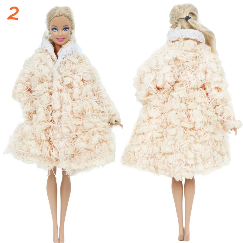 Renkli 1 Set Uzun Kollu Yumuşak Kürk Üstleri Elbise Kış Sıcak Gündelik Giyim Aksesuarları Giyim Için Barbie Bebek Çocuk Oyuncak