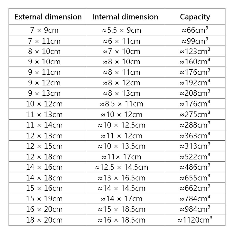 Açılmak boyutu: yaklaşık 7x 9cm/2.8x3.5 ", 7x1 1cm/2.8x4.3", 8x1 0cm/3.1x3.9 ", 9x1 0cm/3.5x3.9", 9x1 1cm/3.5x4.3 ", 9x1 2cm/3.5x4.7", 9x1 3cm/3.5x5.1 ", 10x1 2cm/3.9x4.7", 11x1 3cm/4.3x5.1 ", 11x1 4cm/4.3x5.5", 12x1 3cm/4.7x5.1 ", 12x1 5cm/4.7x5.9", 12x1 8cm/4.7x7.1 ", 14x1 6cm/5.5x6.3", 14x1 8cm/5.5x7.1 ", 15x1 6cm/5.9x6.3", 15x1 9cm/5.9x7.5 ", 16x2 0cm/6.3x7.9",18x2 0cm/7.1x7.9"