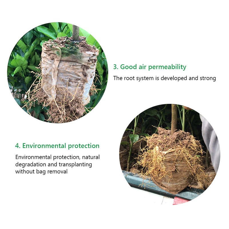 Çevre dostu nefes alabilen ve biyobozunur dokunmamış malzeme, naklederken torbayı çıkarmaya gerek yok, bitkilerin hayatta kalma oranını artırıyor.