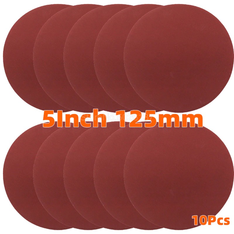 10 Adet 5 Inç 125Mm Alüminyum Oksit Kuru Zımpara Zımpara Diskleri Kanca Döngü Taş Yuvarlak Kırmızı Disk Kum Levhalar Disk Kendinden Yapışkanlı