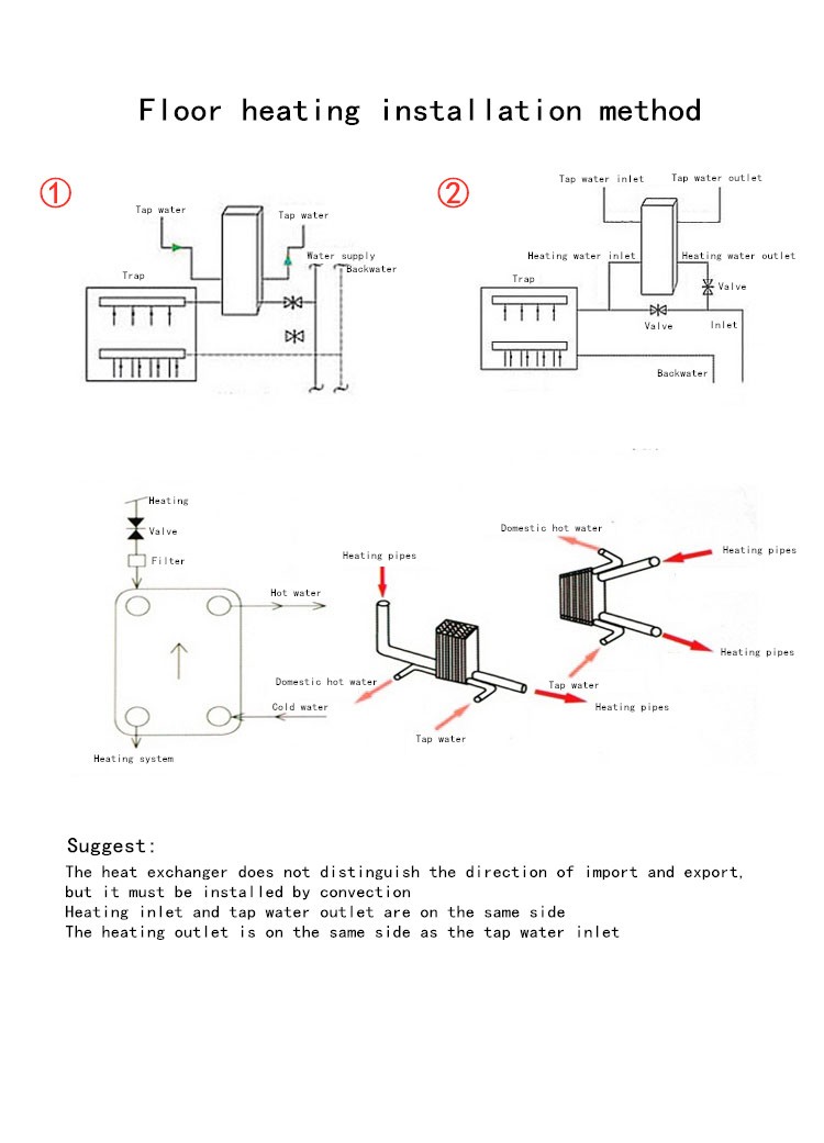 Dört arayüzün yanı sıra, 50 plakalı ısı değiştirici ve üstü için ısı eşanjörü üzerinde bir hava deliği vardır. Bu hava deliğinin işlevi, değiştiricide kalan bir hava varsa ve bu ısı değiştiriciyi ilk kez kullandığınızda suyun geçebilmesi için kalan havayı serbest bırakmanız gerektiğinden kaçınmaktır.. Diğer zaman için, hava deliğinin bir fişe takılması gerekir.
