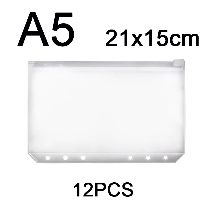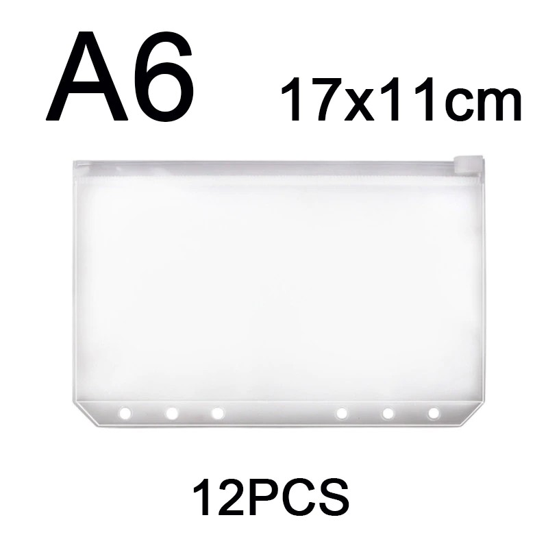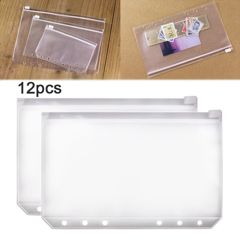 12 Adet Kullanışlı Şeffaf Pvc A5 A6 A7 Binder Cepler Temizle Fermuar Klasörleri 6-Ring Dizüstü Binder Dosyaları Raporları Bağlayıcı
