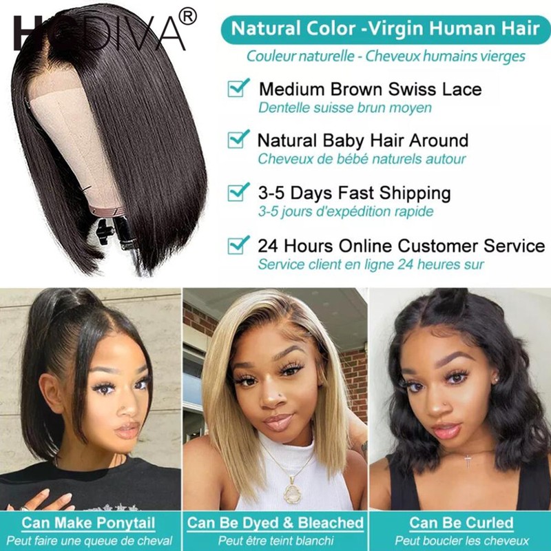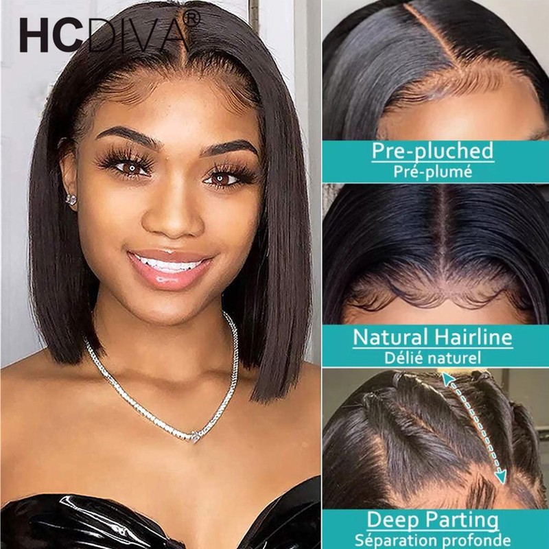13X 4 Kısa Postiç Düz Dantel Ön İnsan Saç Peruk Önceden Koparıp 5X5 T Parça Dantel Kapatma Peruk Brezilyalı Remy Hd Dantel Ön Peruk