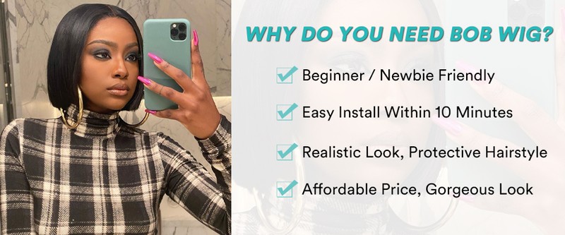 Bob Wig 4: Bob Wig Dantel Ön İnsan Saç Peruk