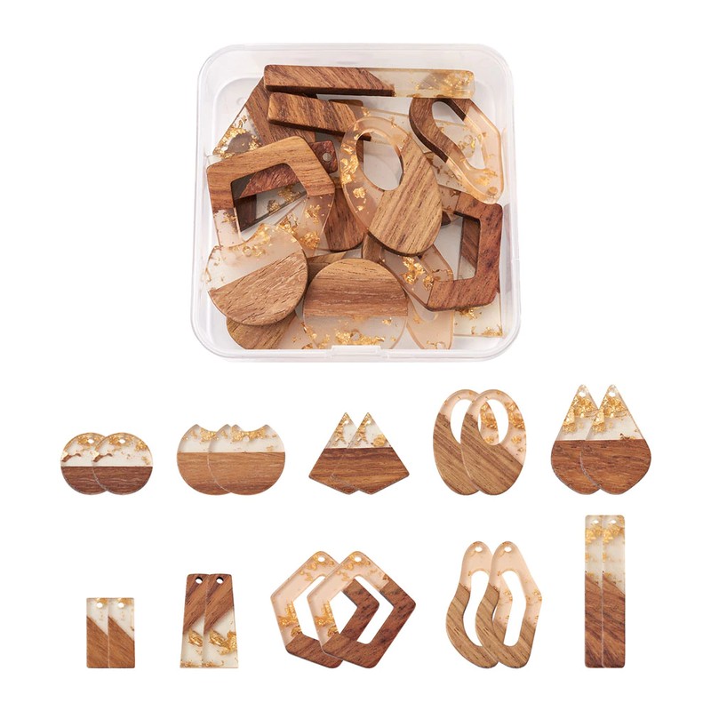 【Kit Includes】: 10 şekillerde 20 adet reçine ve ahşap kolye, 2 adet/şekil, onlar gözyaşı, dikdörtgen, düz yuvarlak, boşluk düz yuvarlak, uçurtma, çokgen, oval, yamuk. 20 adet kanca küpeler ve 20 adet atlama halkaları.