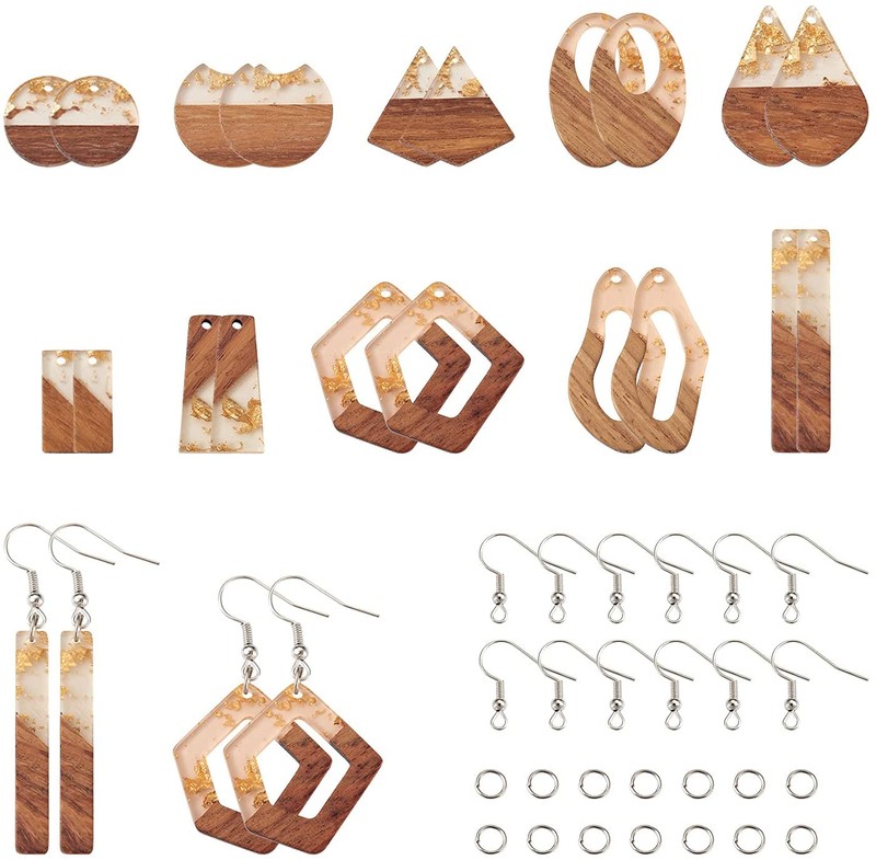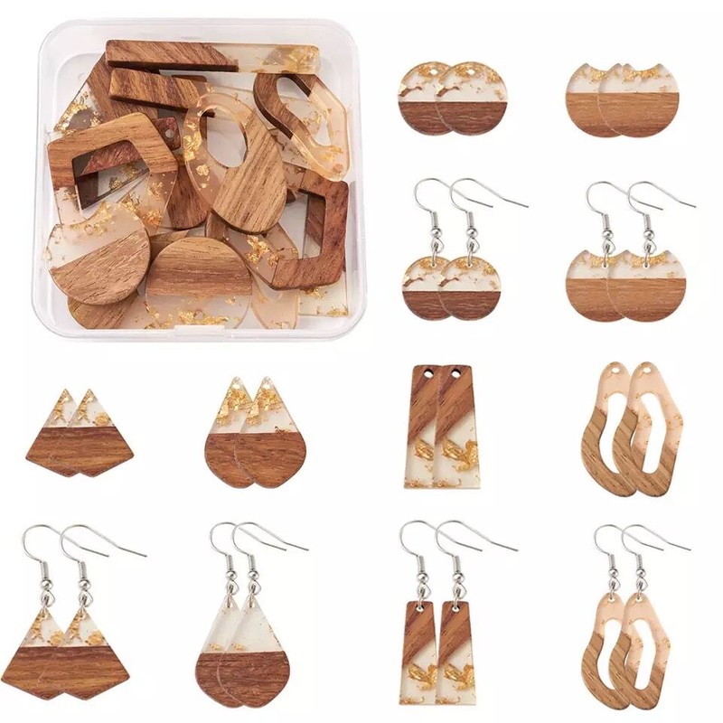 1 kutu reçine ve ceviz ahşap kolye Dangle küpe yapımı için kanca küpeler atlama halkaları ile el yapımı ahşap küpeler malzemeleri kiti