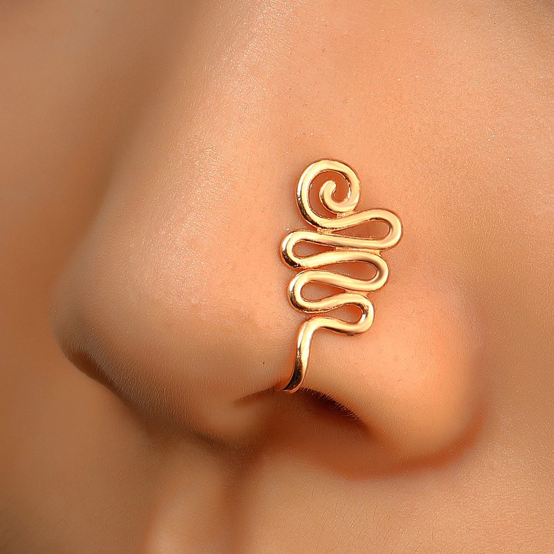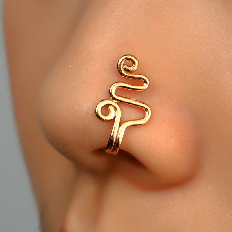 1 Adet Bakır Sahte Piercing Burun Halkası Kalp Yıldız Taç Klip Burun Kulak Klipsi Manşet Küpe Kadınlar Kız Hediye Göbek Takısı Nariz