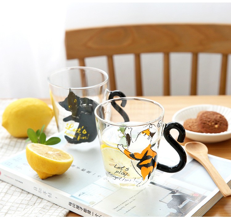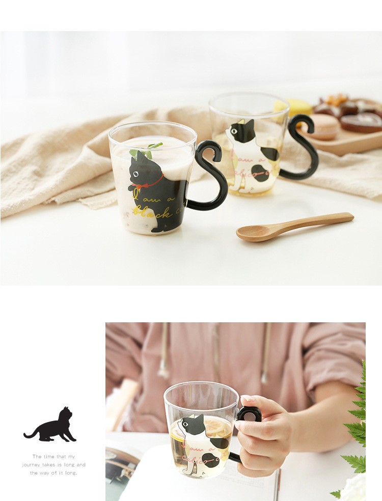 1 Adet Sevimli Kedi Cam Suyu Kahve Fincanı Süt Çay Kahve Bardağı Kupa Kedi Kuyruk Kolu Kedi Sevgililer Günü Sevgilisi Hediyeler Paslanmaz Kaşık