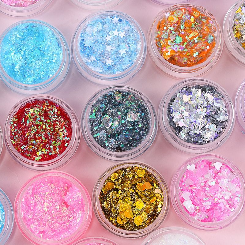 1 Adet Glitter Glam Göz Sparkly Glitter Saç Işıltı Jel Flaş Kalp Gevşek Payetler Glitter Göz Farı Parti Yüz Vücut Dekorasyon