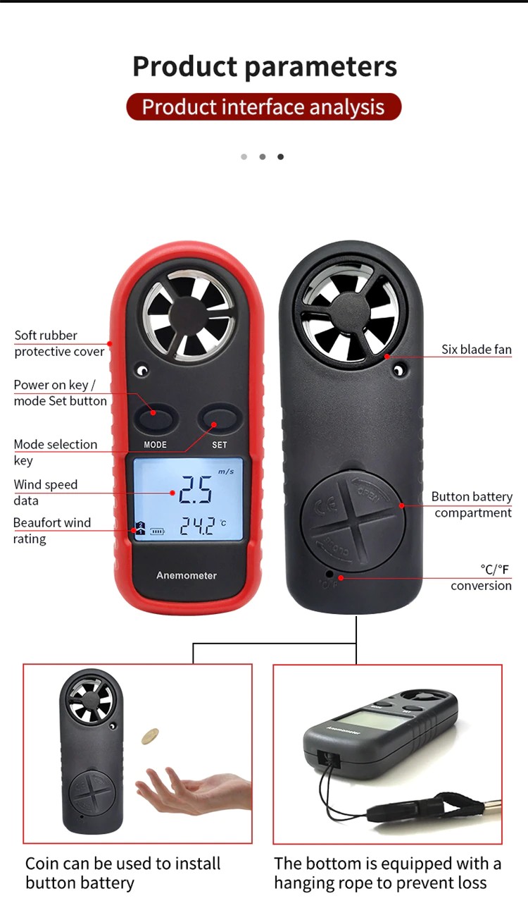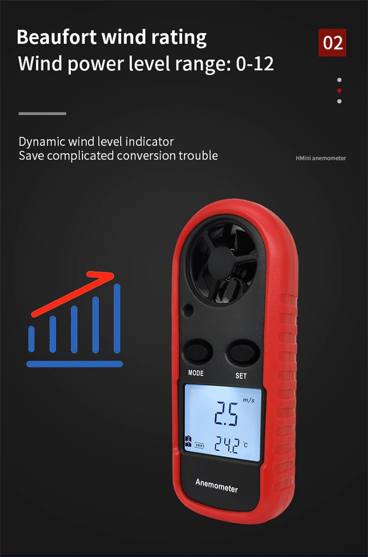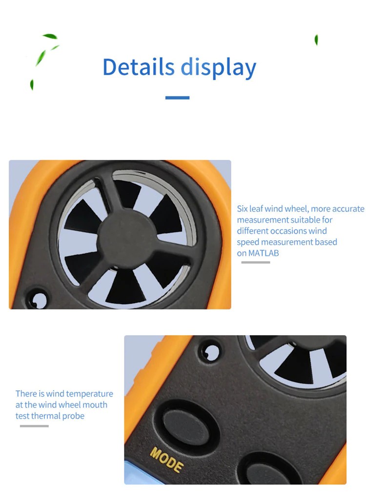 2-in-1 Mini anemometre dijital yüksek hassasiyetli pervane rüzgar hızı hacmi sıcaklık test açık ölçüm windsurf hava