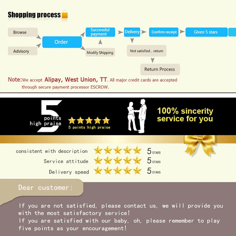 Biz damla nakliye sipariş destek, toptan ve CSV sipariş ve OEM, herhangi bir yeni fikir veya öneri varsa, lütfen çekinmeyin bize ulaşın, biz çözmek ve geliştirmek için elimizden geleni yapacağız, teşekkür ederim!