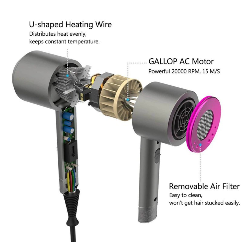 Saç kurutma makinesi negatif iyon fonksiyonuna sahiptir ve negatif iyon cihazı saç kurutma makinesinin içinde görünmez.