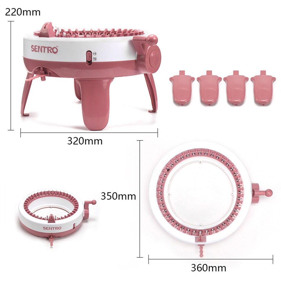 Bu manuel örgü makinesi, çeşitli ihtiyaçları karşılamak için çift moda sahiptir. T döngü örgü, ilk diş sızıntısına döndükten sonra, silindirik bir kumaşa dokunmak için saat yönünde bir dönüş başlatın, bitirdikten sonra şapka olarak kullanılabilir. P düz örgü, ayarlayabilirsiniz genişliği kumaş ihtiyaçlarınıza göre ve kullanın iğne ve tığ işi serbestçe ekleme bir eşarp, vb