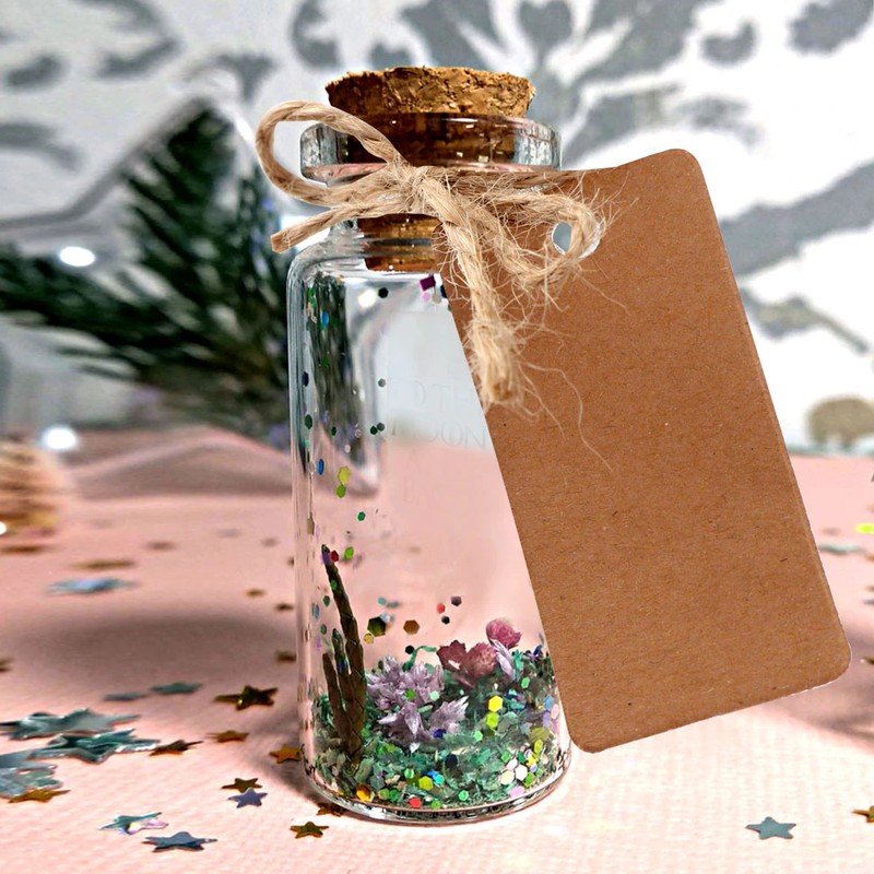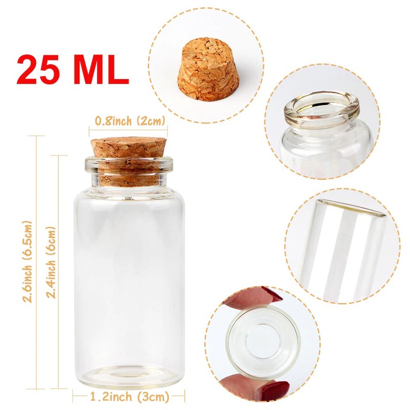 -Şişe kapasitesi: 25ml, şişe ağız çapı: 0.8in(2cm), şişe yüksekliği (mantar olmadan): 2.4in(6cm), alt çap: 1.2in(3cm), etiket etiketleri: 2in x 1in(5cm x 2.5cm), dizeleri 13in(32cm) uzun, her çıkartmalar 0.6in x 3in(1.5cm x 7.8cm). Düğün iyilik, dilek mesajı ve günlük kullanım.