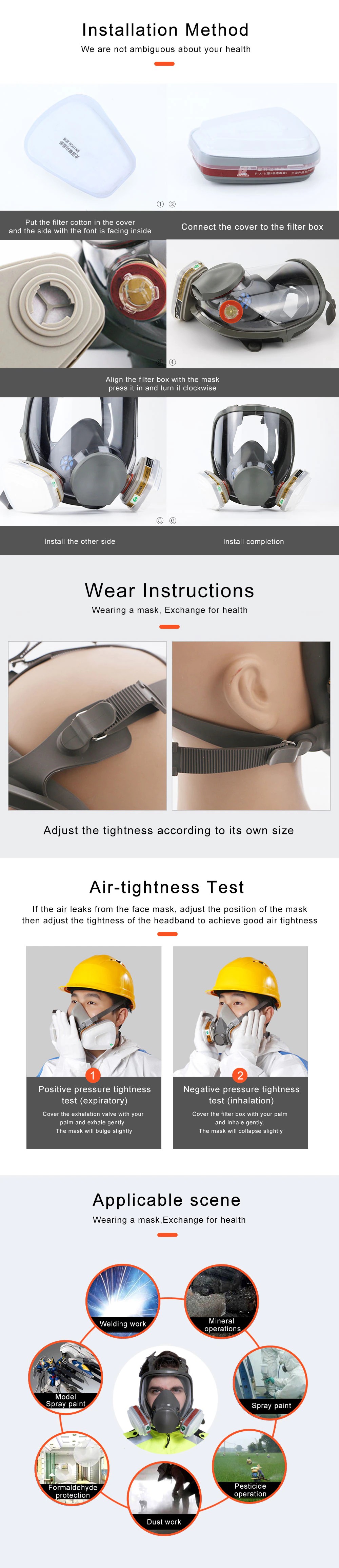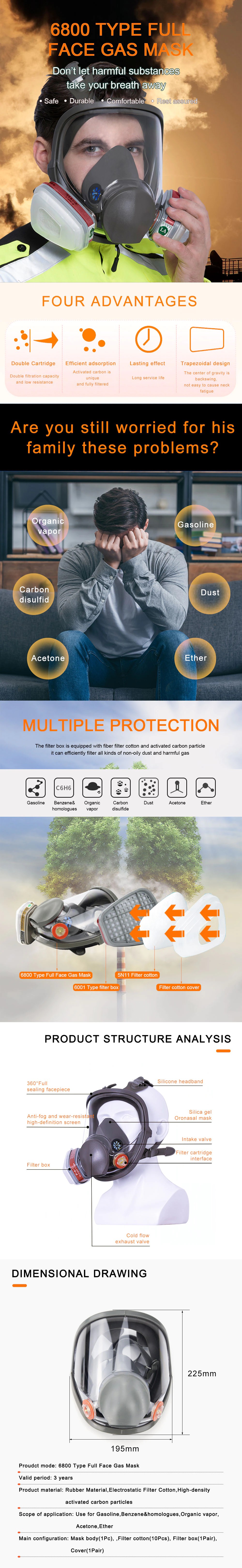 Bu maskesi tamamen eşdeğer 3m 6800 kapsamlı koruma fonksiyonu, kullanılan 3M filtre pamuk, yüksek kaliteli ürünler