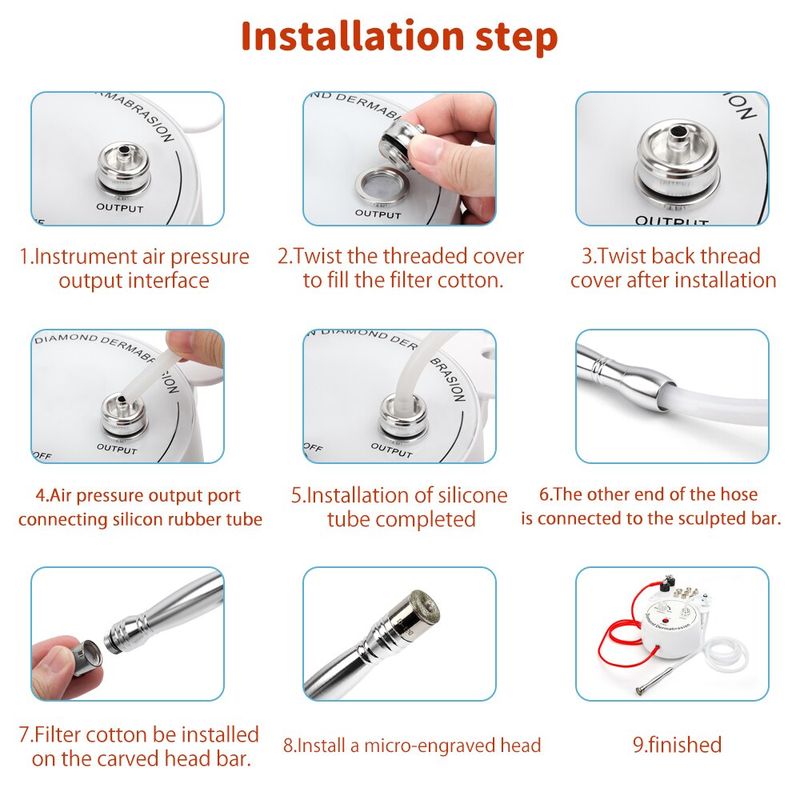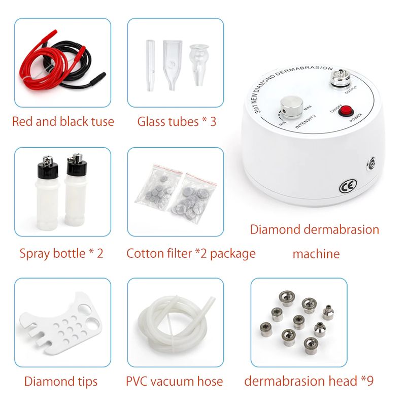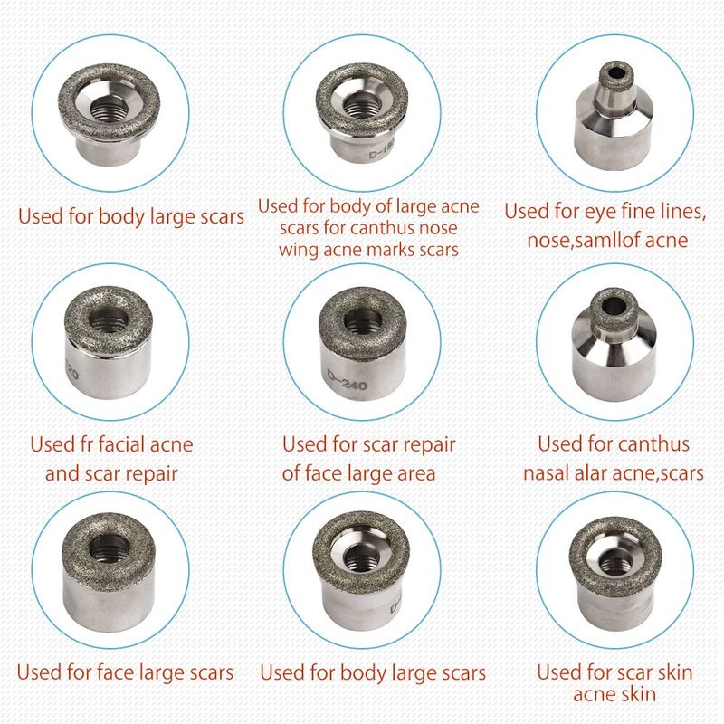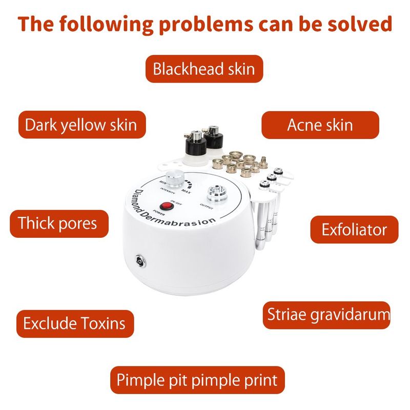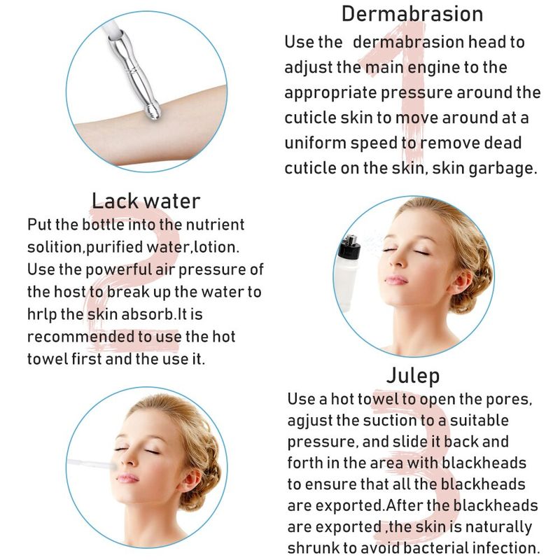●Mikrodermabrazyon, steril elmas kafaları kullanarak ölü deri hücrelerinin üst tabakasını nazikçe peeling veya polishesaway eden non-invaziv, cilt yenileme prosedürüdür. Daha sonra vakum, filtrasyon sisteminde kir veya ölü cildi kapatacak. Cilt tonunu, dokusunu ve elastikiyetini iyileştirmeye yardımcı olur ve yaşlılık lekelerinin, ince çizgilerin ve pigmentasyonun görünümünü azaltır.