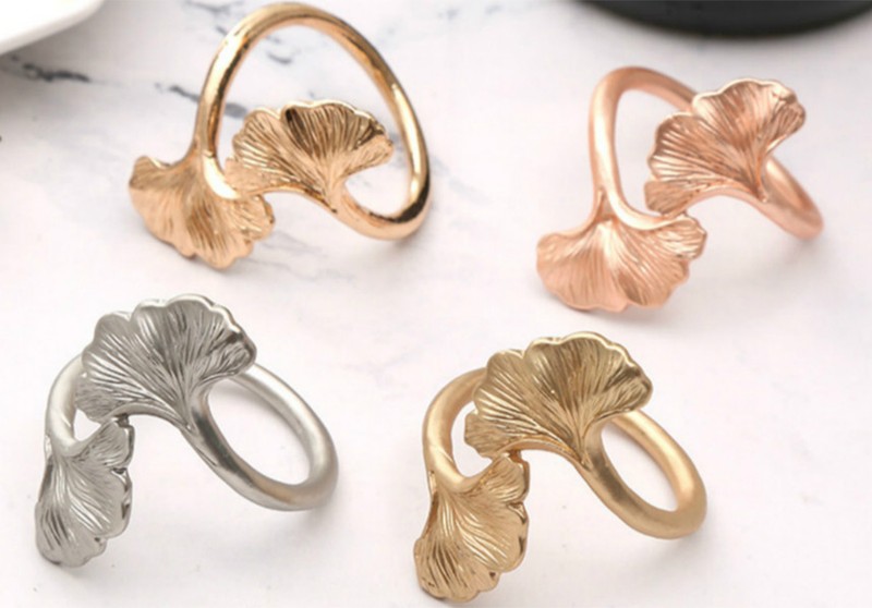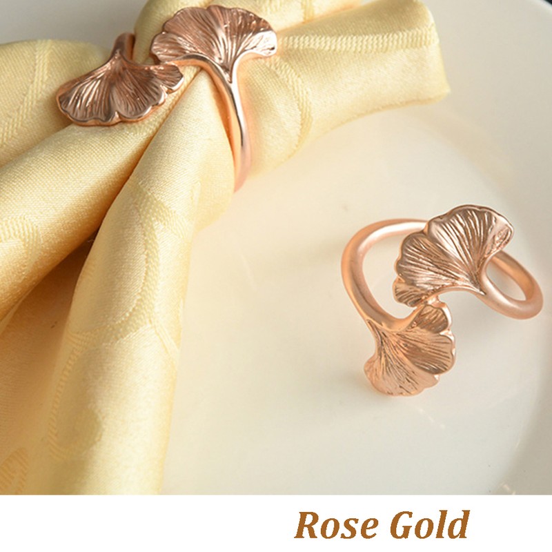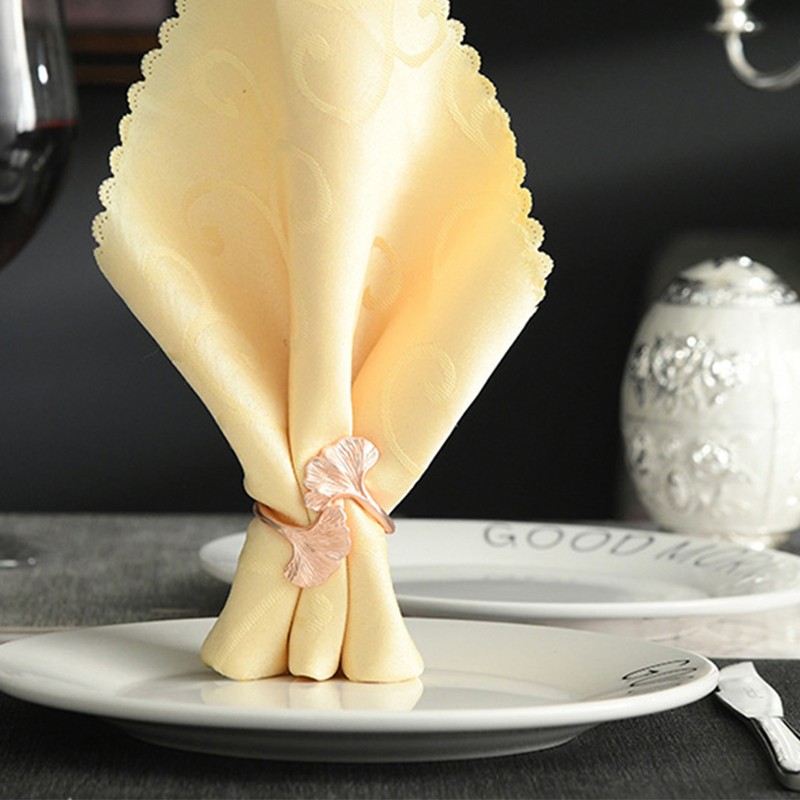 4 Adet Ginkgo Yaprağı Metal Peçete Halkası, Yaratıcı Gül Altın Rengi Peçete Toka, Ev Yemek Odası Otel Masa Yeni Dekor