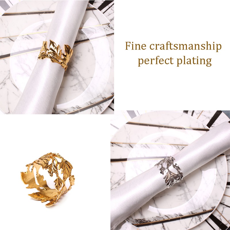 【Sağlam peçete halkaları malzeme】-çinko alaşımı. Benzersiz tasarım zarif görünüyor, partide birçok övgü alacaksınız. Peçete halkasının her detayı bir zanaat, doğru kesim, kesinlikle mükemmel olmasını sağlamak için peçeteye zarar vermez.