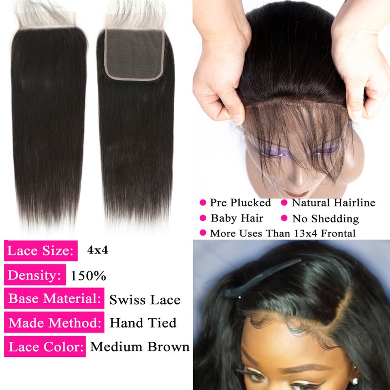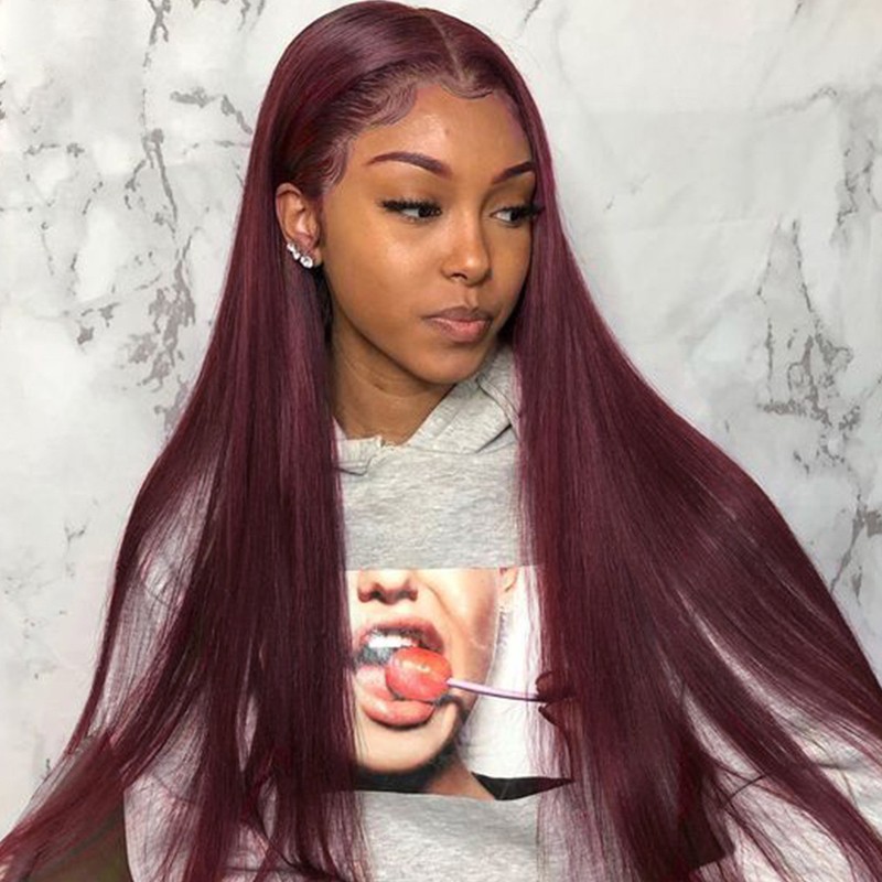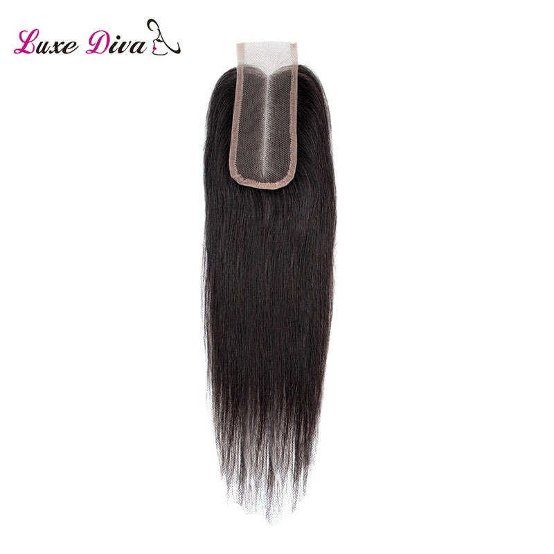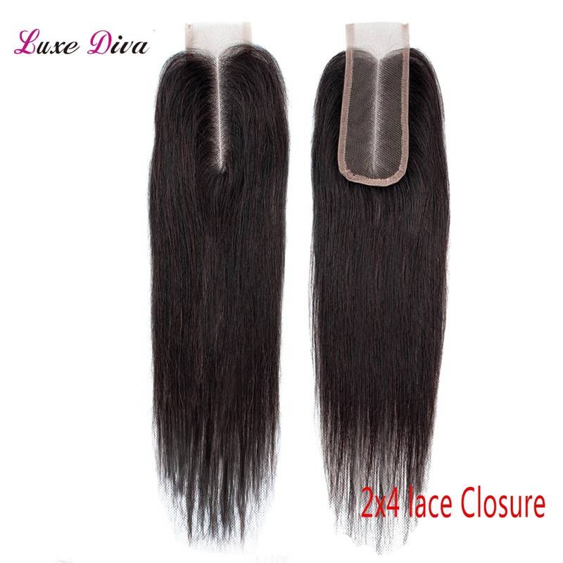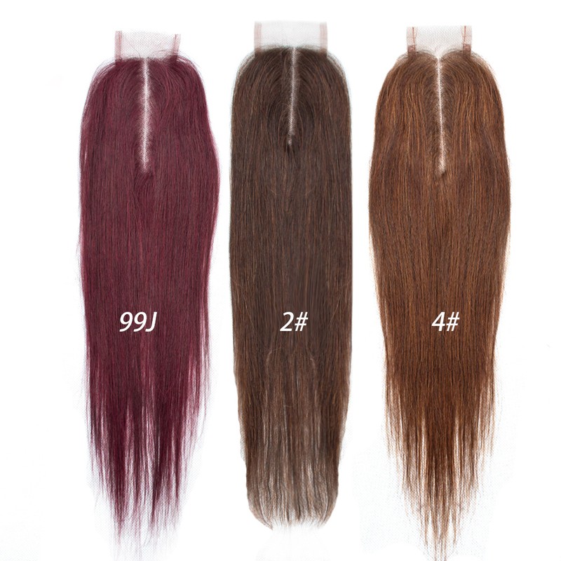 Luxediva 2X4 Dantel Kapatma Koparıp Koyu Kahverengi 2 #4 # 99J Kırmızı Orta Kısmı Brezilyalı Düz Saç Cheveux Insan Saçı Kadın