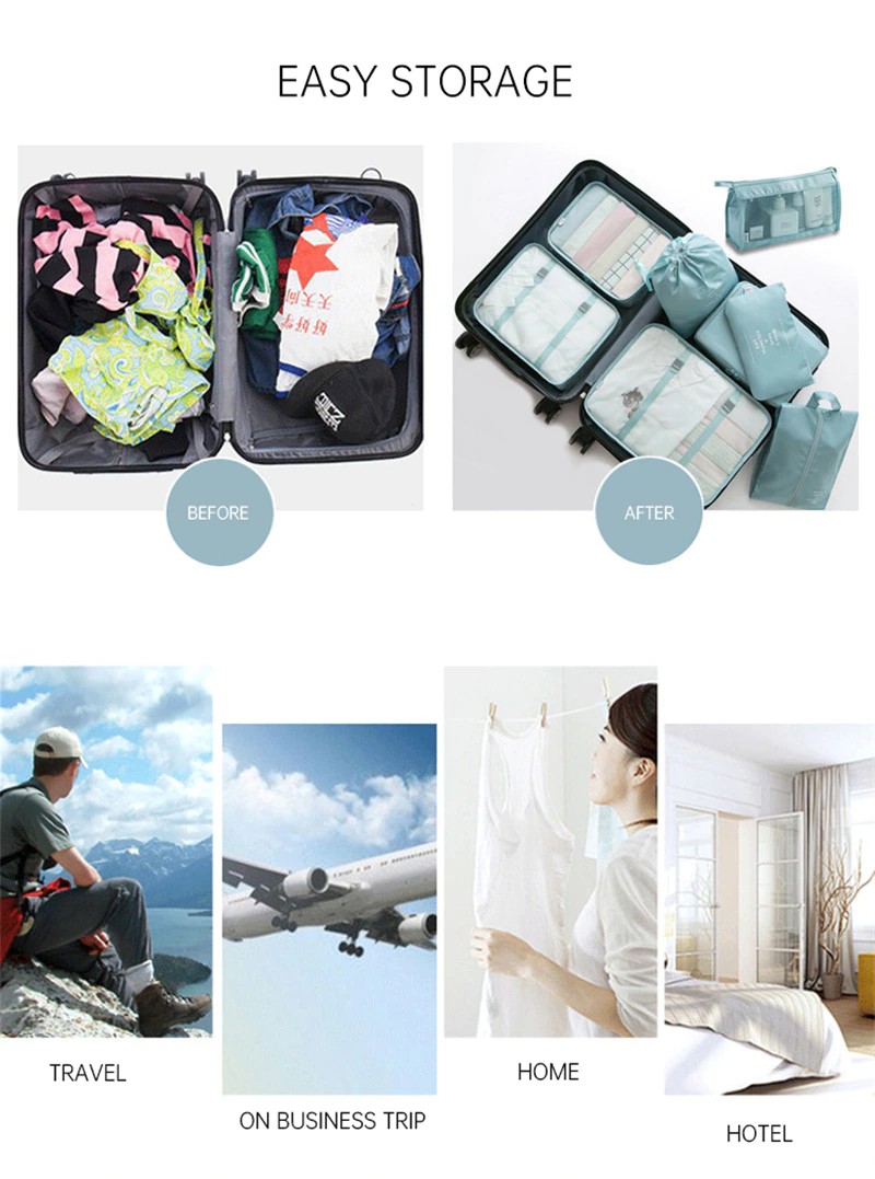 6/8 Adet Set Seyahat Organizatör Depolama Çanta Bavul Ambalaj Seti Saklama Kutuları Taşınabilir Bagaj Organizatör Giyim Ayakkabı Düzenli Kılıfı