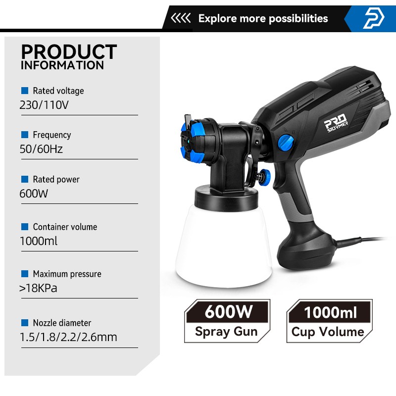 600W Elektrikli Püskürtme Tabancası 4 Meme Boyutları 1000Ml Hvlp Ev Boya Püskürtücü Akış Kontrol Airbrush Kolay Püskürtme Tarafından Prostormer