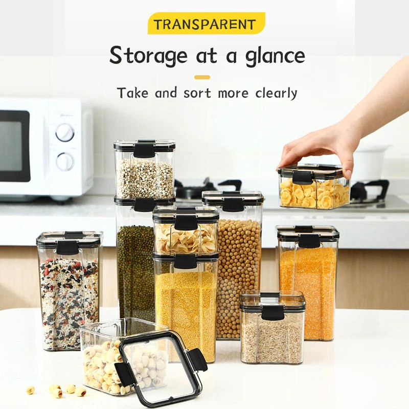 700/1300/1800ML gıda saklama kabı plastik mutfak buzdolabı erişte kutusu Multigrain depolama tankı şeffaf mühürlü kutular