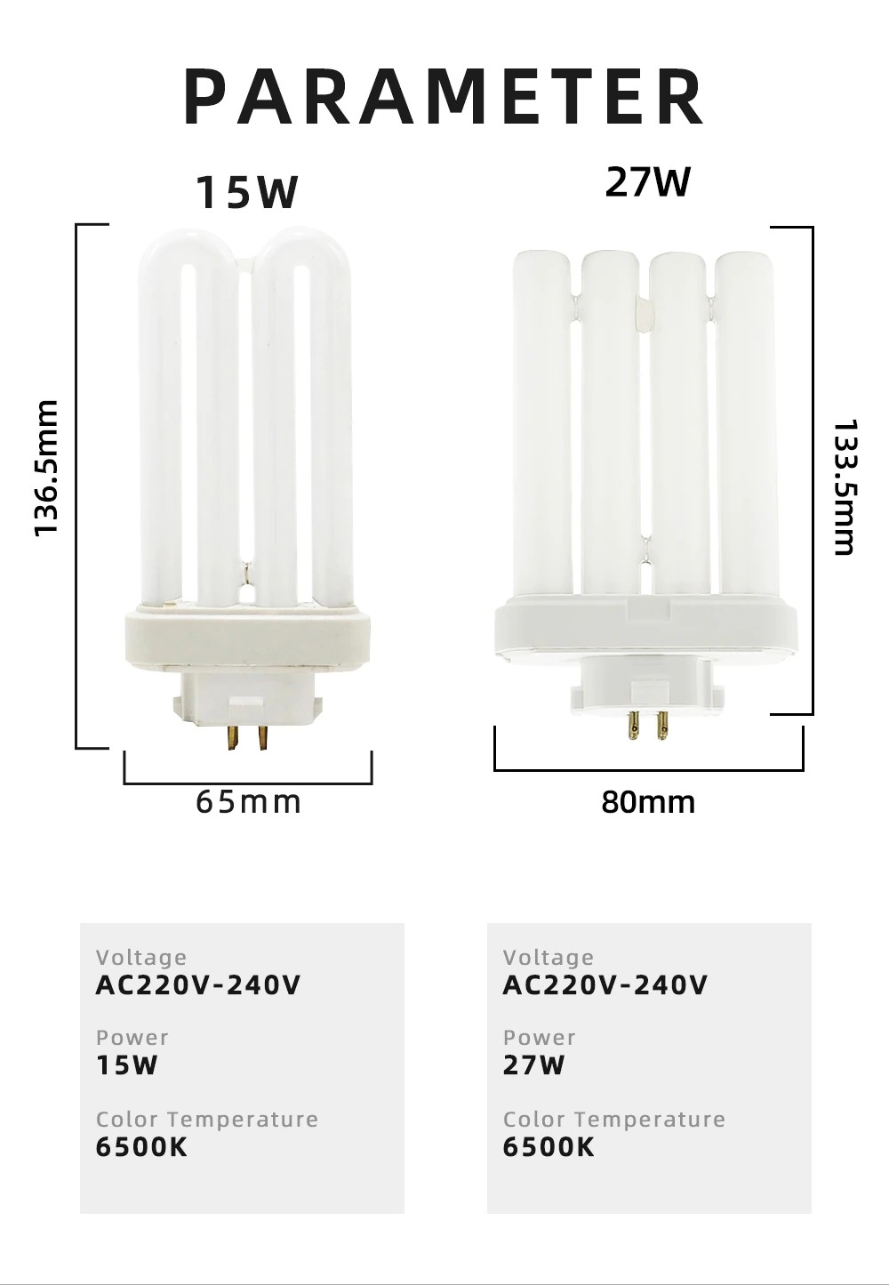 Ac220V-240V Dört Pim G10Q Floresan Tüp Lamba 15W 27W Kare Iğneler Göz Koruma Lighttubes 6500K Enerji Tasarruflu Lamba