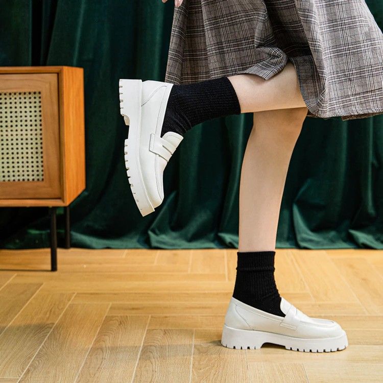 Aiyuqi Bahar Ayakkabı Kadın İngiliz Tarzı en yeni Yeni Kalın Tabanlı Kolej Tarzı Günlük Mokasen Ayakkabı Hakiki Deri Moda Ayakkabılar Kız