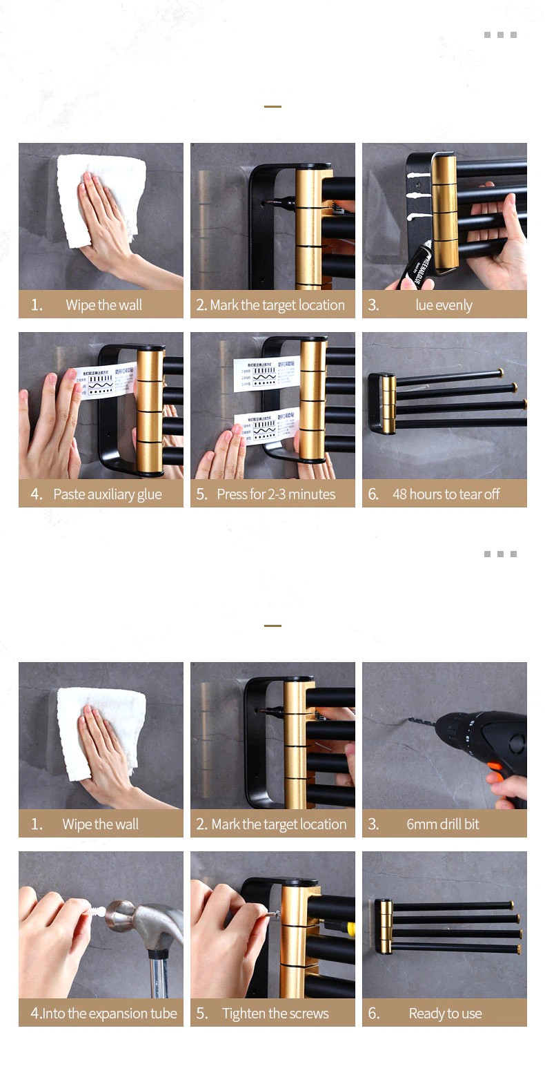 Banyo Havlu Askısı Punch-Ücretsiz Dönen Havlu Tutucu Duş Raf Alüminyum Banyo Havlu Depolama Raf Banyo Ev Düzenleyici
