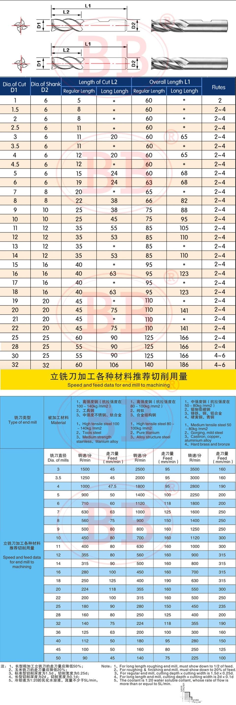 Bb Frezeler Yüksek Hassasiyetli Hss Metal Kesici Co8 Kobalt D1-32Mm 2 3 4 Flüt Diş Alüminyum Freze Aracı Anahtar Kişilik Yönlendirici Bit