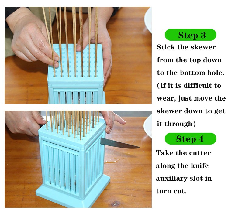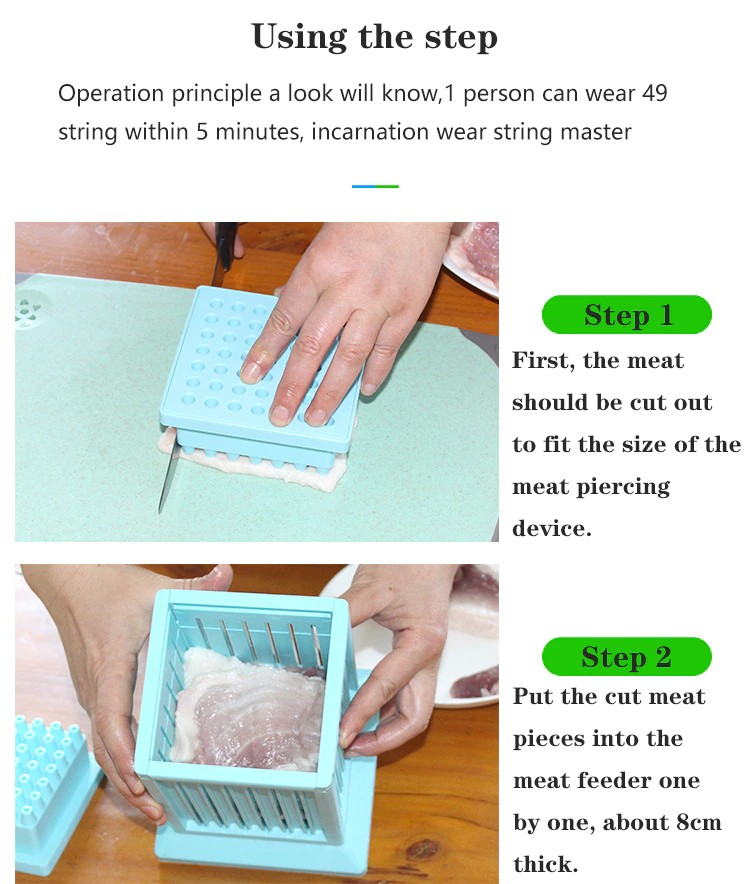 1. Önce et delici cihazın boyutunu kesmek için et dolgu kapağını kullanın. 2. Kesilmiş et parçalarını yaklaşık 8cm kalınlığında bir et parçasına yerleştirin. 3. Pişirme işaretini üstten koyun ve alt deliğe ulaşın. (Bazı giymek zor, biraz aktivite altında giyebilir.) 4, kesme bıçağı yardımcı yuvası boyunca kesici almak ve kutuyu açmak için adım 5 kesmek, 49 dizeleri yapılır!