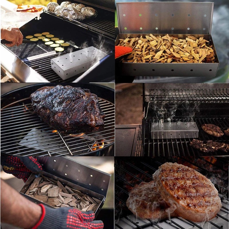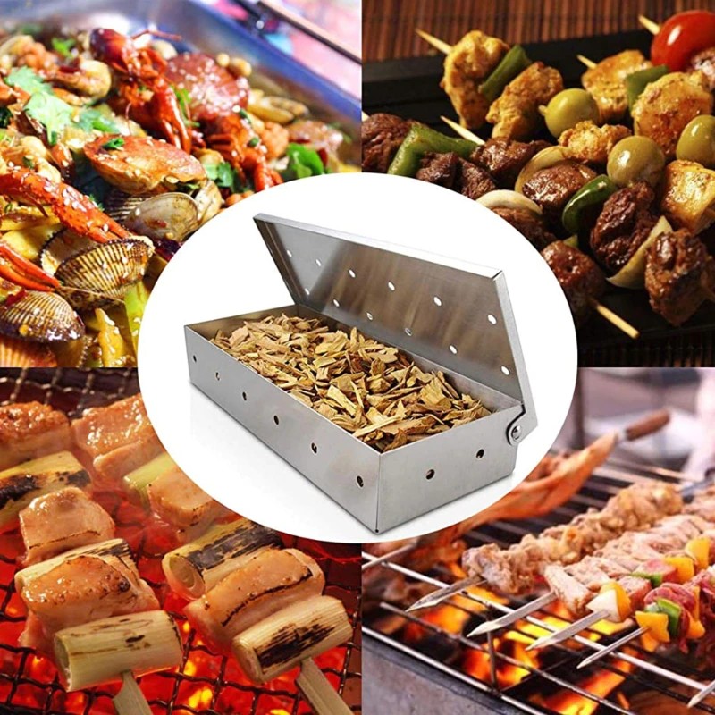 Dayanıklı Barbekü Paslanmaz Çelik Ahşap Yongaları Sigara Kutusu Ahşap Pelet Kömür Gaz Izgara Duman Jeneratörü Için Balık Sığır Et Sigara C