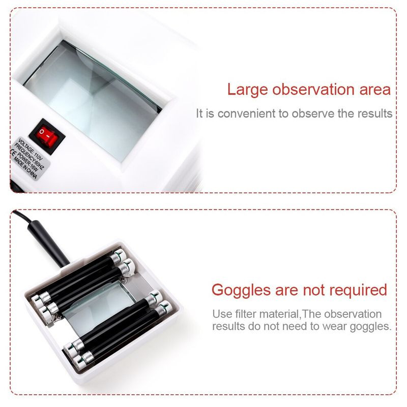 * Bu profesyonel cilt bakımı Woods lambası 3x diyoptri büyüteç lensine sahiptir ve cilt koşullarını teşhis etmek için UV ışığı kullanır. Dermatolojide cildin sonraki flüoreslerini gözlemlemek için kullanılan bir teşhis aracıdır. Dalga uzunluğu yaklaşık. 365 nanometre.