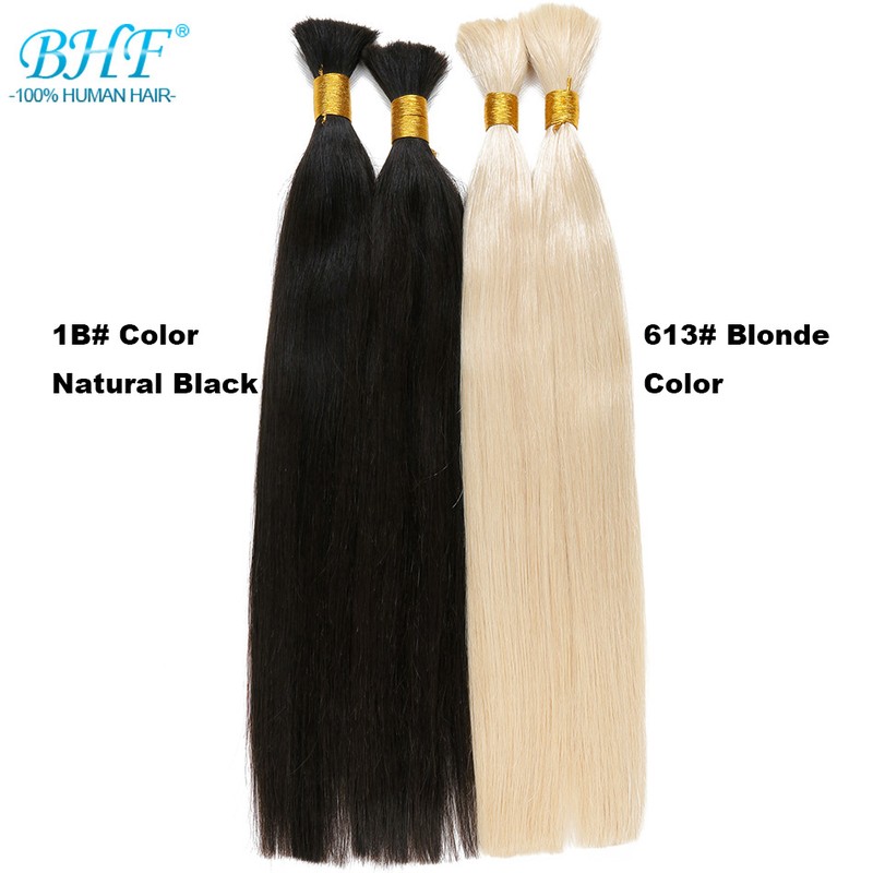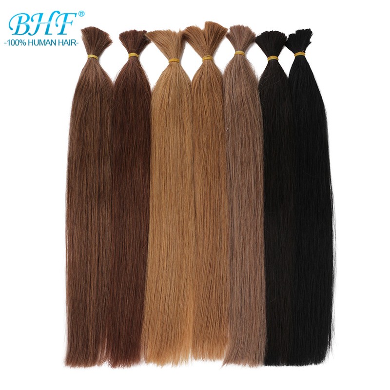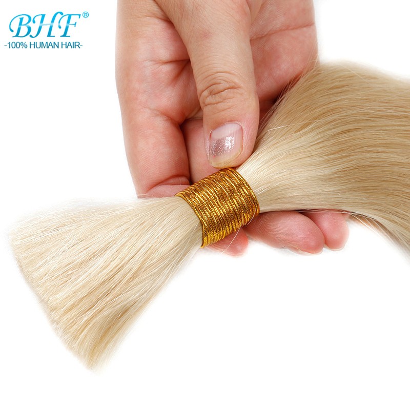 Bhf 100% İnsan Örgü Saç Toplu Makine Yapımı Remy Düz Hindistan Saç Toplu Uzun Uzunluk 100G Doğal Sarı Saç