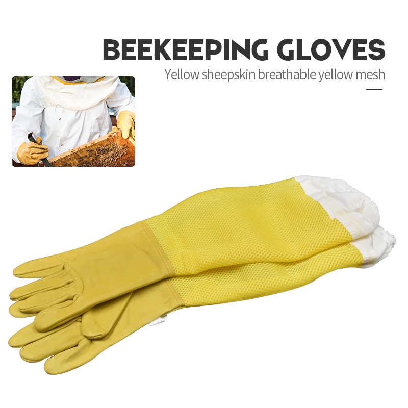 Marka Sarı Koyun Derisi Nefes Sarı Örgü Arı Eldiven Havalandırmalı Profesyonel Anti Arı Arıcılık Arıcı Arı Kovanı