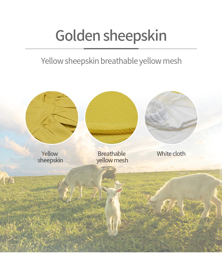 Malzeme: Sarı koyun derisi ve yüksek nefes alabilen örgü ve polyester pamuk