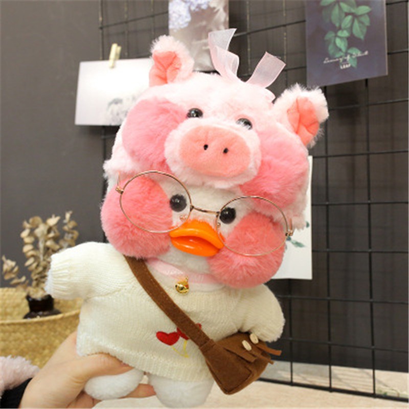 Karikatür Küçük Sarı Ördek 30Cm Peluş Oyuncak Cafe Ördek Giyen Gözlük Elbise Eşleşen Bebek Bebek Yastık Noel Hediyesi