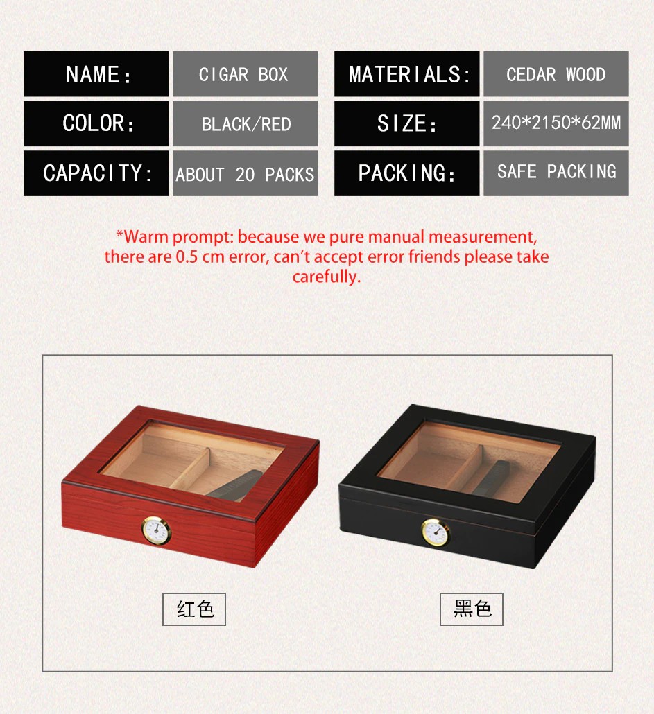 Sedir Ağacı Puro Seyahat Tütün Kutusu Taşınabilir Puro Kılıfı W/Nemlendirici Higrometre Neme Sigaren Kutusu Cohiba Puro